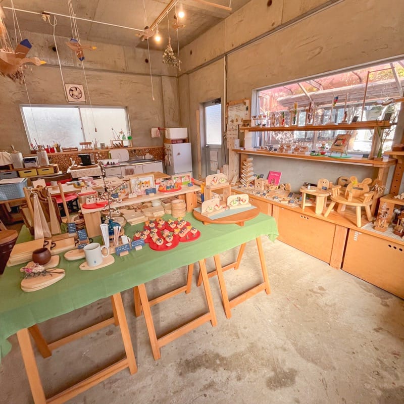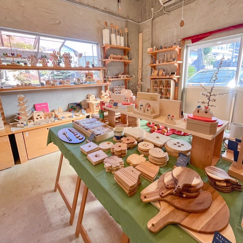 倉庫をリノベーションした落ち着いた雰囲気の店内には、堀田さんによる温もりあふれる木工作品がたくさんディスプレイされています。