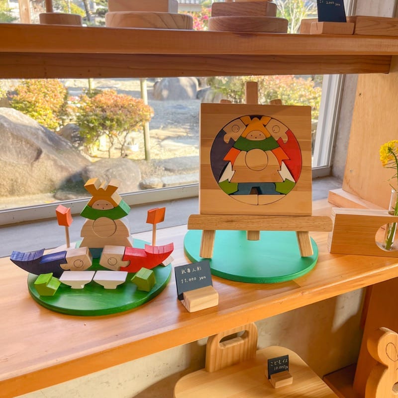 大きな窓から自然光がたっぷり差し込むこちらのコーナーには、人気作品である観覧車や鯉のぼり、積み木、椅子などが並んでいます。
