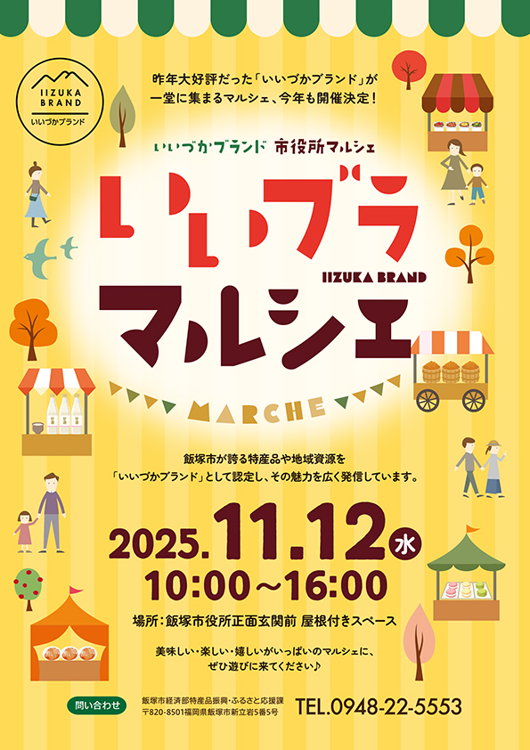 11月12日(水)、飯塚市役所本庁1階にて「いいブラマルシェ」が開催されます。前回大好評だったイベントが再び開催され、飯塚市が認定する“いいづかブランド”の商品が一堂に集まります。