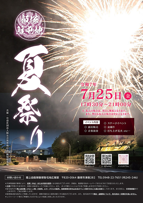 7月25日(金)、「飯塚駐屯地夏祭り」が開催されます!