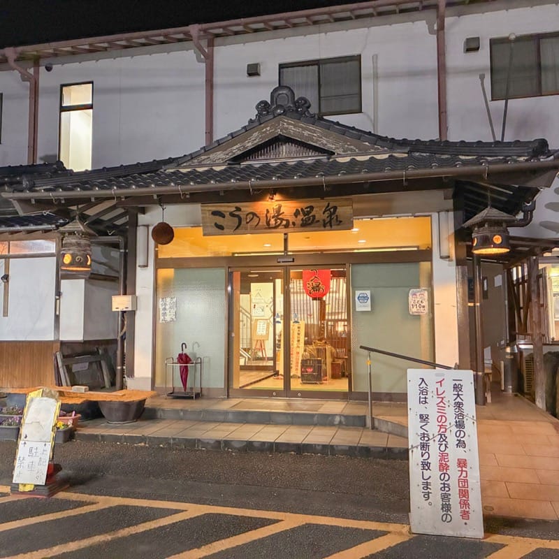 ここは、飯塚市伊川にある「こうの湯温泉」。開店時間は9:00〜23:00で、年中無休で営業しています。