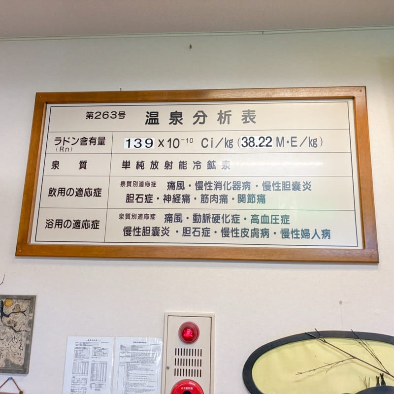 こうの湯温泉の特徴の1つは、ラジウムを含んだ源泉です。