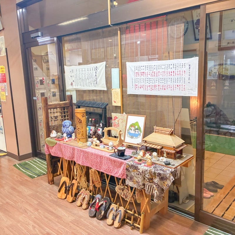 カウンターの近くには色々な雑貨が整然と並んでいて、懐かしさを感じます。おじいちゃん、おばあちゃんの家のような雰囲気で、温泉を利用している方が声をかけてくださることも。