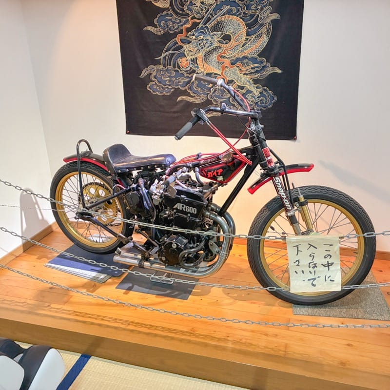 「1Fの休憩所にあるバイクは、親交がある元オートレース選手が、引退前の最後のレースで使用していたバイクです。飯塚オートレース場を盛り上げたい気持ちがあって、あのバイクをこの場所に飾らせてもらうことになったんです」