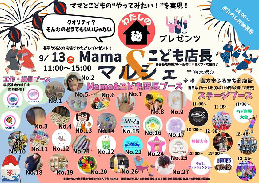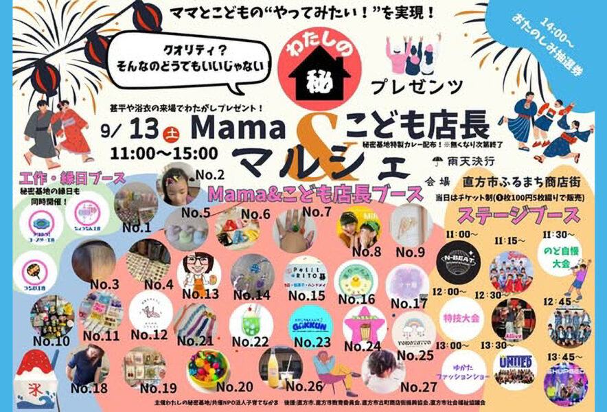 9月13日(土)、直方市ふるまち商店街で「Mama & こども店長マルシェ」が開催されます。