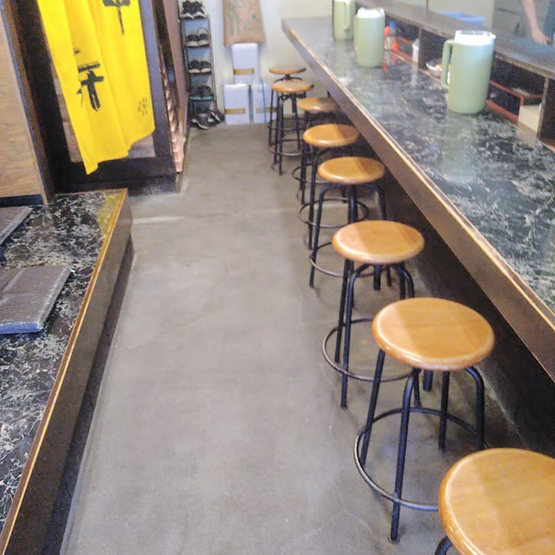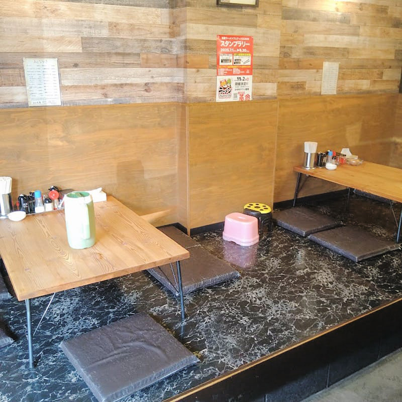 食欲をそそるとんこつの匂いに誘われ店内に入ると、とっくにお昼時をすぎていたにもかかわらず、カウンター席と座敷席の用意された店内にはお客さんの姿がチラホラ。