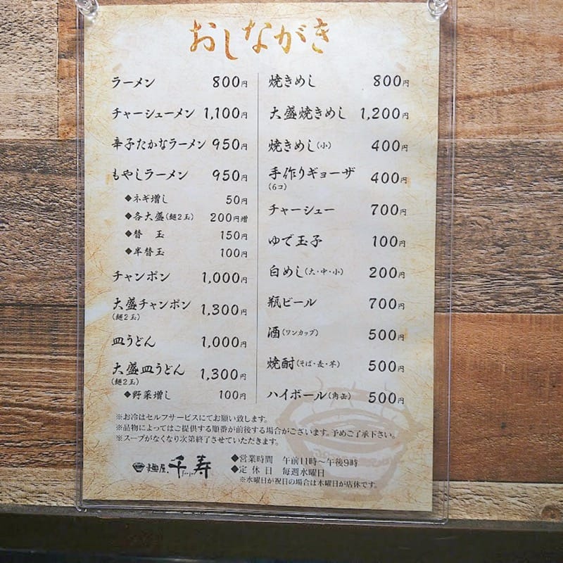 改めてメニュー表をチェックしてみると、チャーシューメン・もやしラーメン・ギョーザなどといった定番メニューに混じって、福岡のラーメン店ではちょっと珍しい「皿うどん」の文字が。