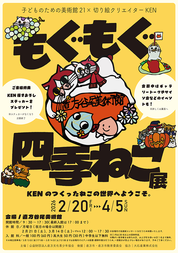 2月20日(金)から、直方谷尾美術館で「もぐもぐ四季ねこ展」が開催されます。