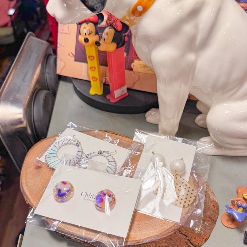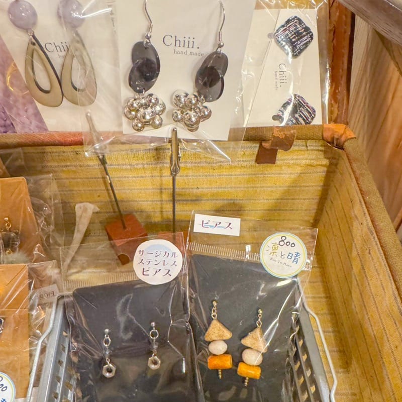 MUSTmasでは、オリジナルアクセサリーを作っている「Chiii」さんと「凛と晴」さんのピアスやイヤリングの取り扱いも行っているそうです。