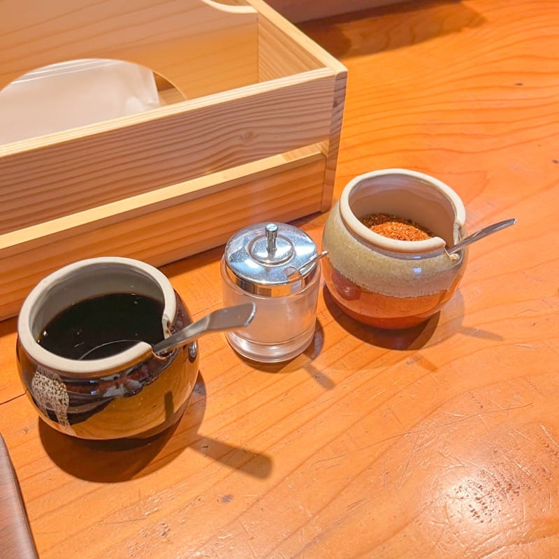 また、お肉は一味や岩塩を添えて、味の変化を楽しむこともできます。