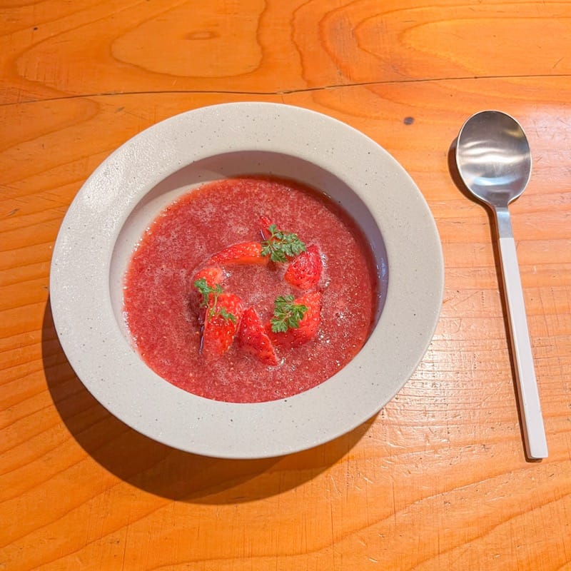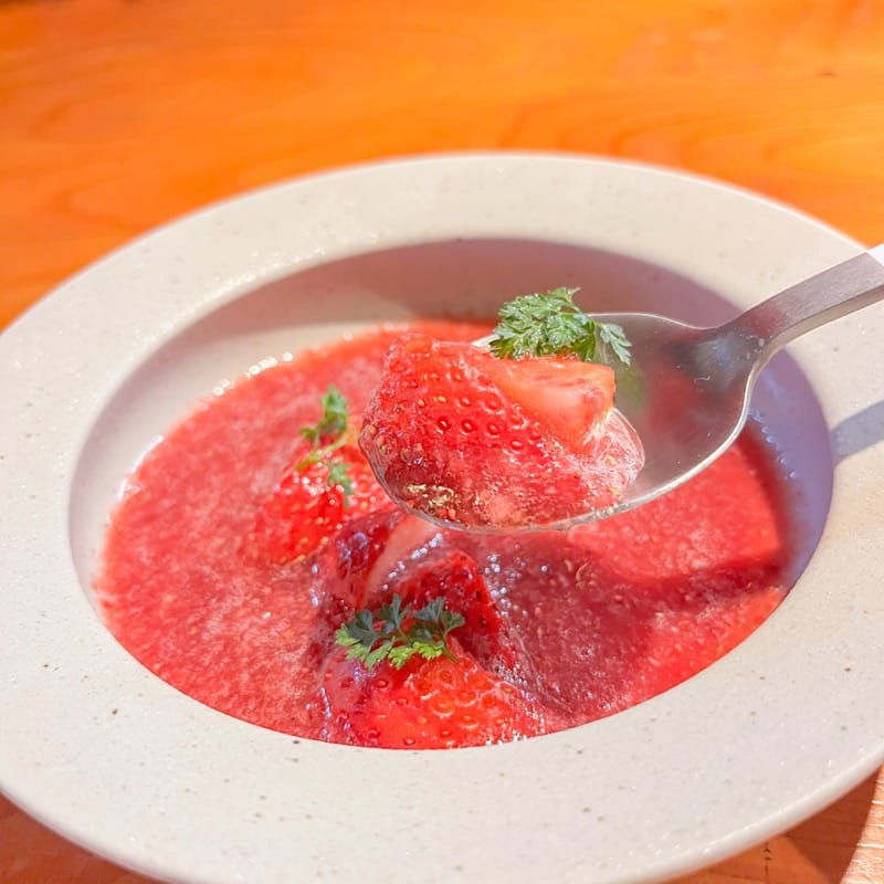 とろりとしたスープには、いちごのみずみずしさと甘酸っぱさがギュッと凝縮されていて、まさにいちご好きにはたまらない至福の味わい…♥最後の一滴まで、名残惜しさを感じながらも美味しく完食しました。