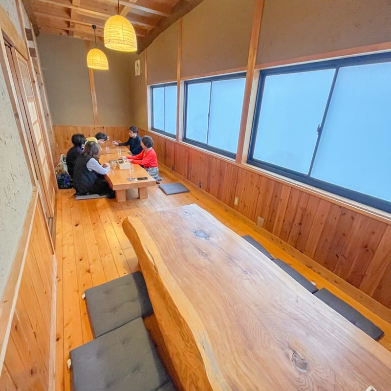 奥へ進むと広々としたお座敷が広がっており、ご家族連れやグループでの集まりにも利用しやすくなっています。