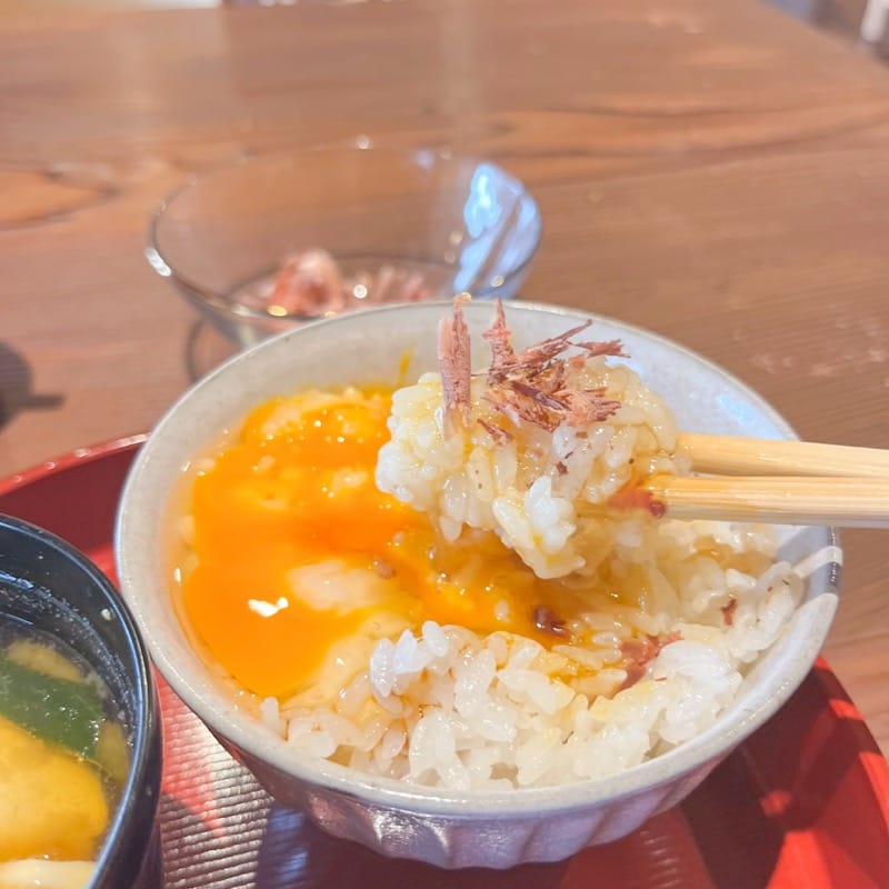 そして醤油は飯塚「金芳醤油醸造元」の「かんろ」を使用と、すべて素材にこだわった卵かけご飯です。