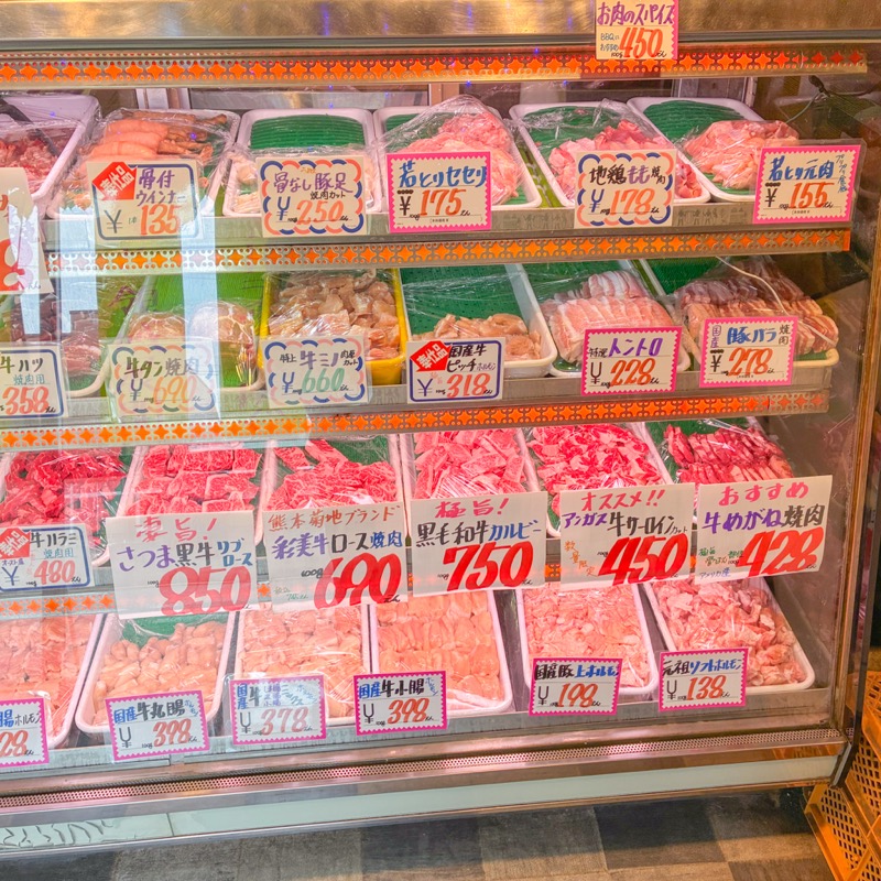 普段スーパーで買うお肉はもちろん、珍しい部位のお肉、すぐに調理ができるお惣菜が取り揃えられています。