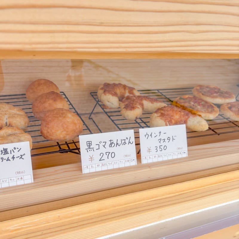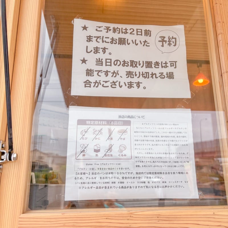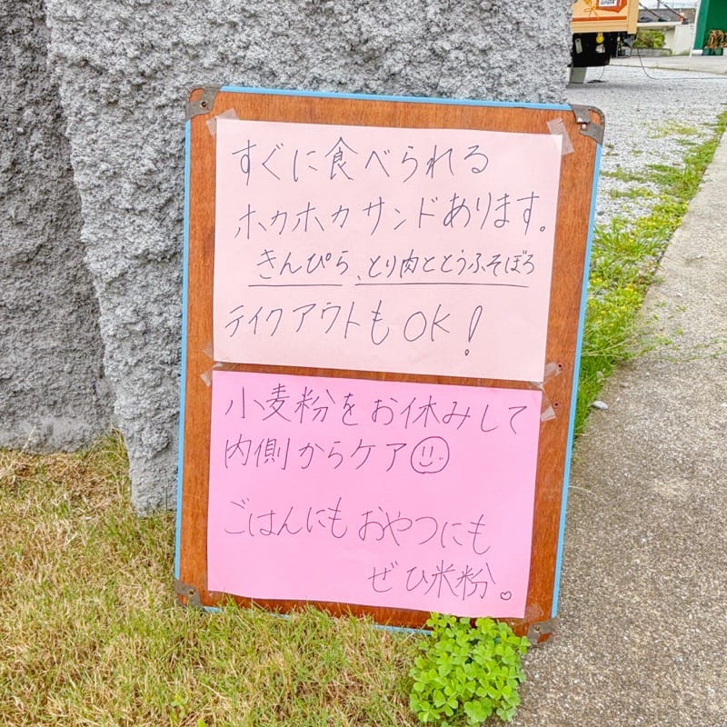 入り口には手書きの看板がありました!こちらでは米粉パンを購入することができます。
