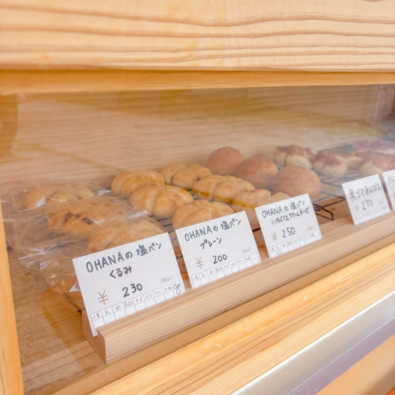 OHANAの塩パン|(右上)プレーン 200円・(左)くるみ 230円・(右下)いちじくとクリームチーズ 250円