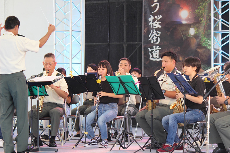 地元の子どもたちによる和太鼓演奏や、フラダンスグループの発表、大任中学校吹奏楽部と陸上自衛隊飯塚駐屯地音楽部のコラボステージも見どころです。