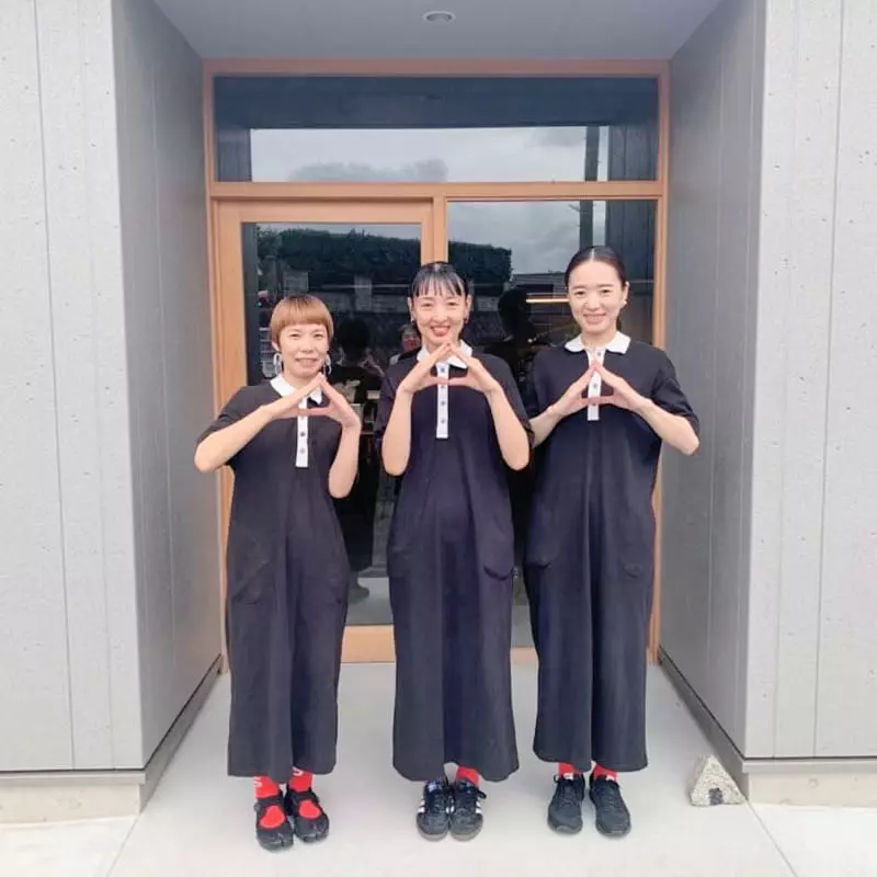 せわしの店主は、直方育ちのステキな三姉妹。ニックネームで、左から長女のケイニさん、次女のヨウニさん、三女のサッピさんです。おにぎりポーズで撮影してくれました。