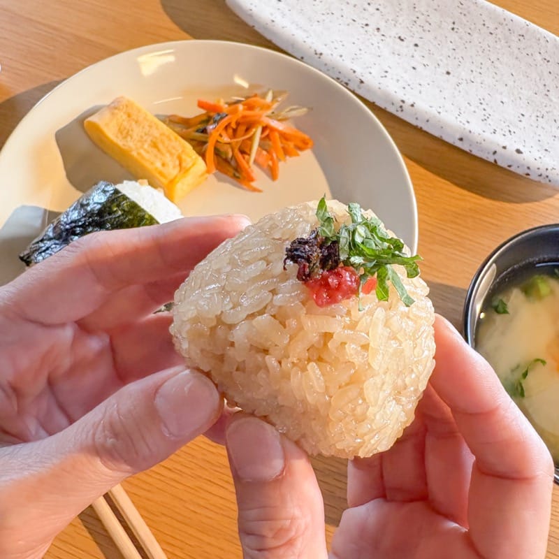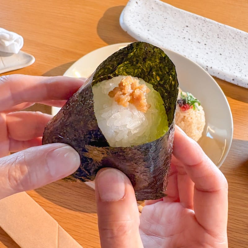 手前から、おにぎり茶のおかかとチーズ、おにぎり白の梅と大葉となっています。