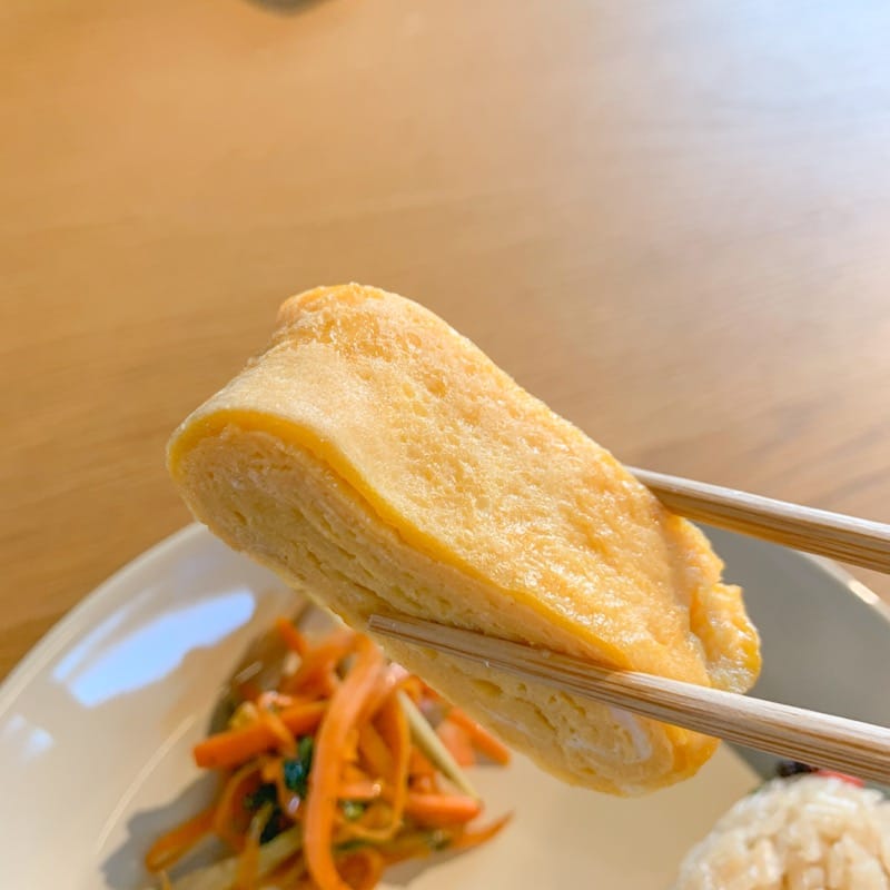 やさしい甘さの卵焼き、そしてシャキシャキの食感のきんぴらは、彩りもきれい。