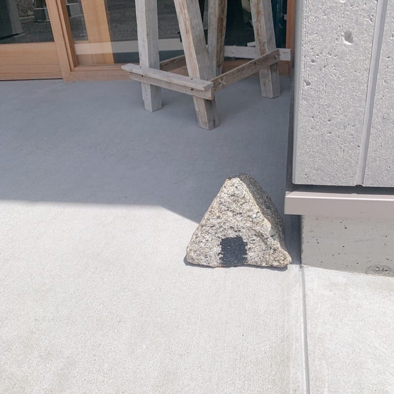 入口におにぎりの石を見つけました。敷地内に、もう2つおにぎりの石があるそうですよ。探してみるのも楽しいですね。