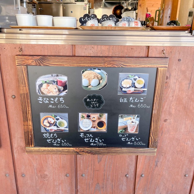 いちご大福・極小 1個270円・焼きもちぜんざい 650円