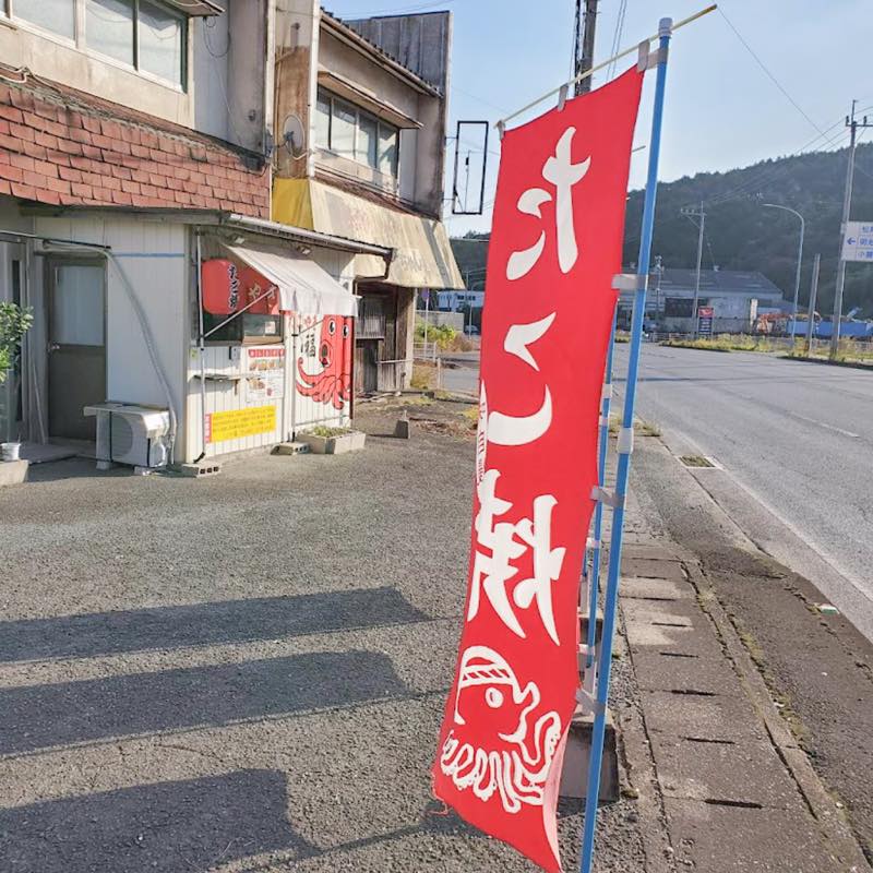 「たこ焼き」「焼きそば」などと書かれたのぼりと、ユーモラスなたこのイラストが書かれた販売ブースが目印。