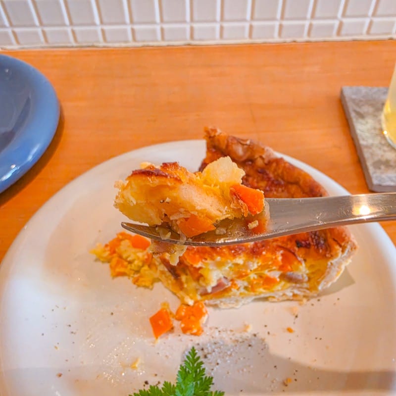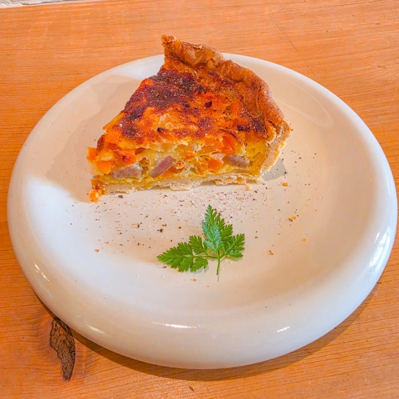 訪問日のキッシュは、にんじんと新玉ねぎ、ハーブソーセージを使った一品。