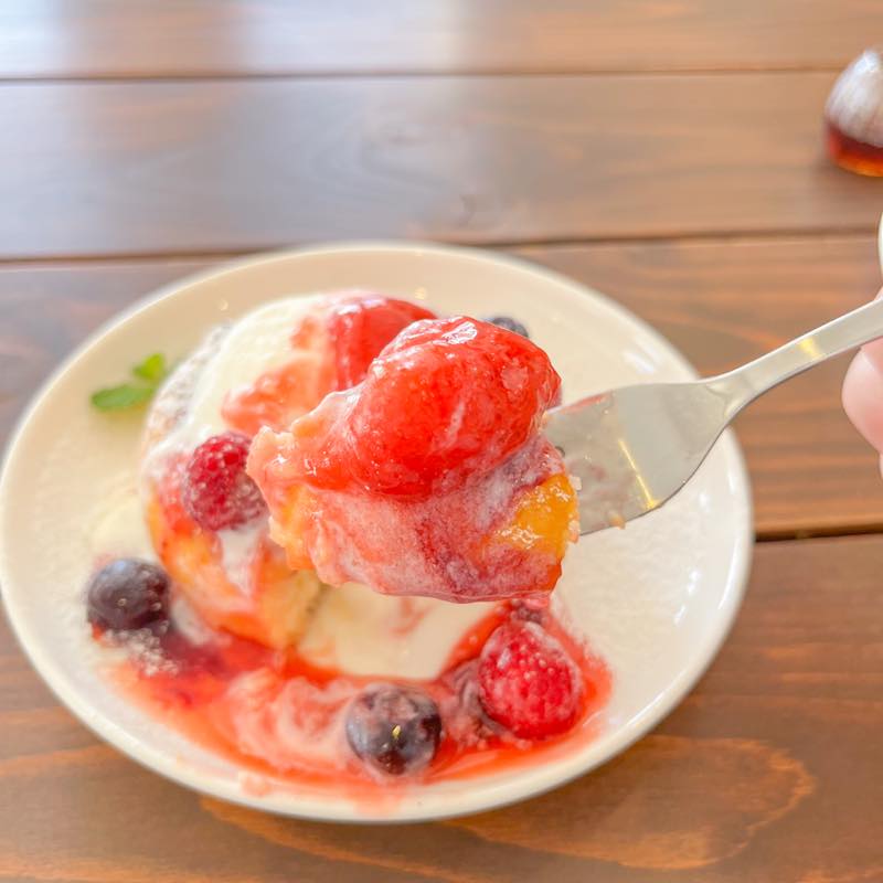 甘酸っぱいベリーソースとジューシーな果肉がフレンチドーナツと相性ぴったりで、とても美味しいです♪