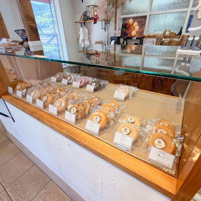 ショーケースにはずらりと可愛らしい焼きドーナツが並びます。