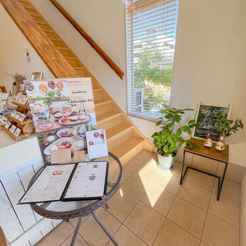 こちらの階段を上がると2階カフェスペースがあり、カフェメニューをこちらで見ることができます♪
