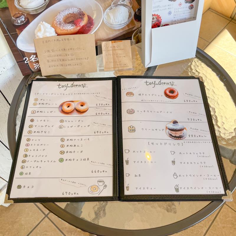 カフェメニューは、ドーナツ・ドリンクセットがありドーナツの種類によって金額が変わります。