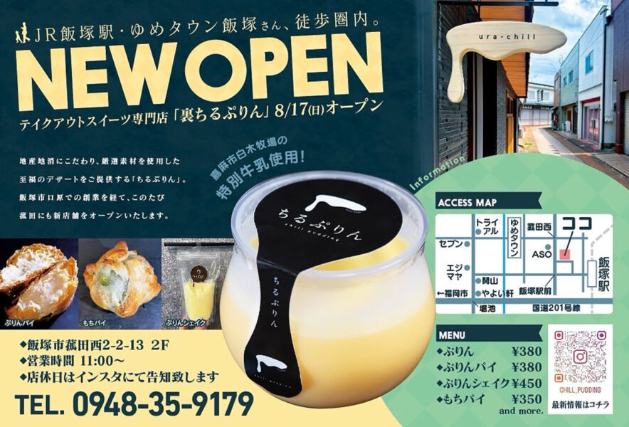 場所はJR飯塚駅すぐ近くのレトロな裏路地で、「ちるぷりん頴田店」にはないメニューも登場予定♪