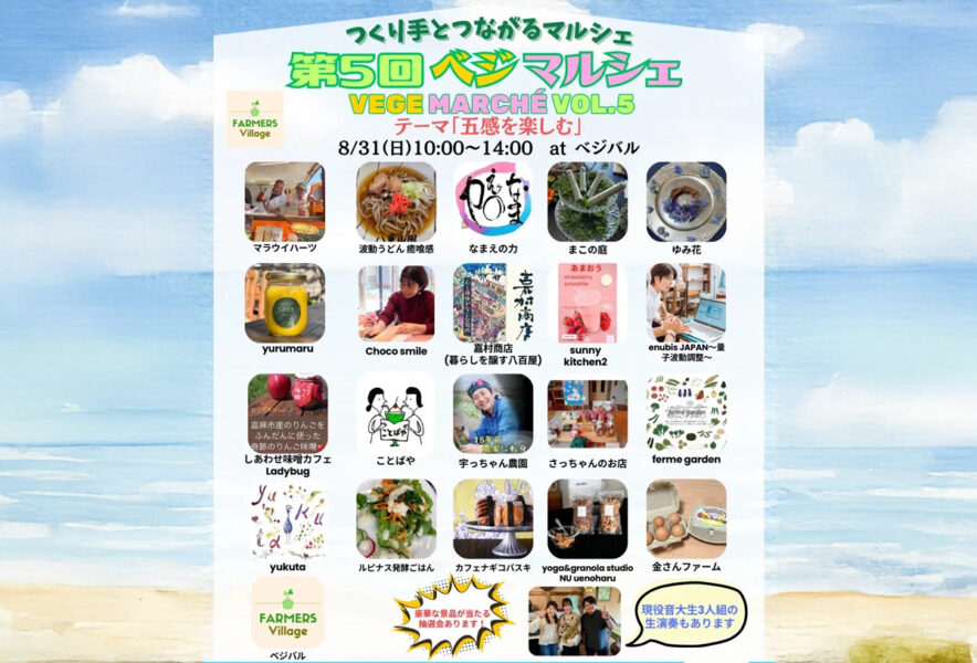 8月31日(日)、ファーマーズキッチンべジバルで「第5回 ベジマルシェ」が開催されます。