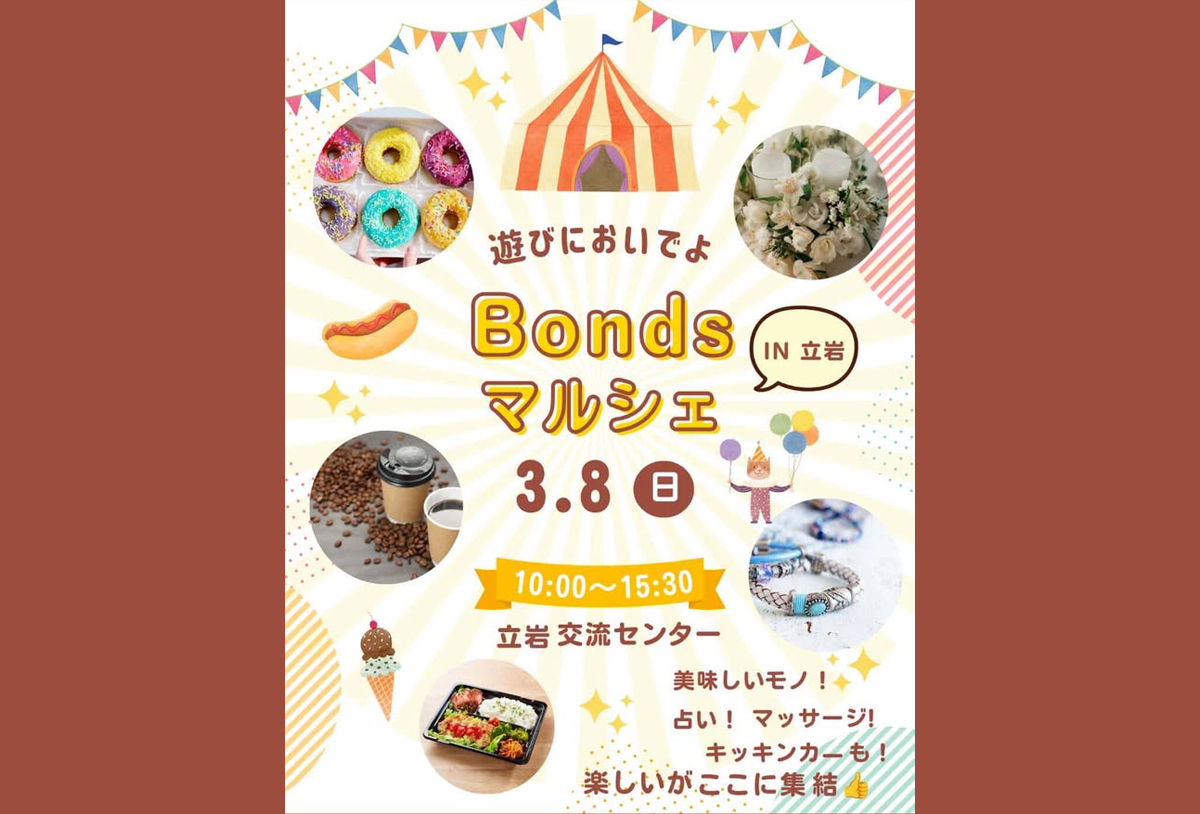 3月8日(日)、立岩交流センターで「Bondsマルシェ in 立岩」が開催されます。