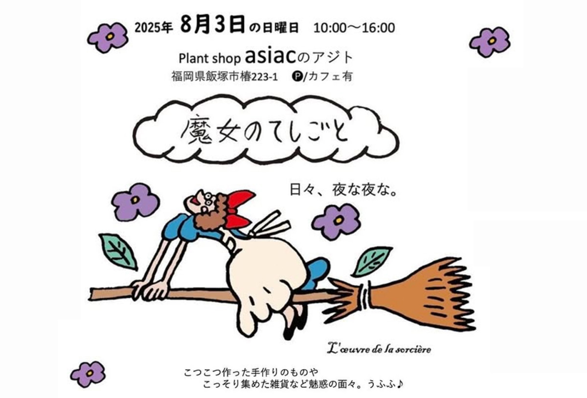 8月3日(日)、プランツショップasiacの別館アジトで、「魔女のてしごと」が開催されます。