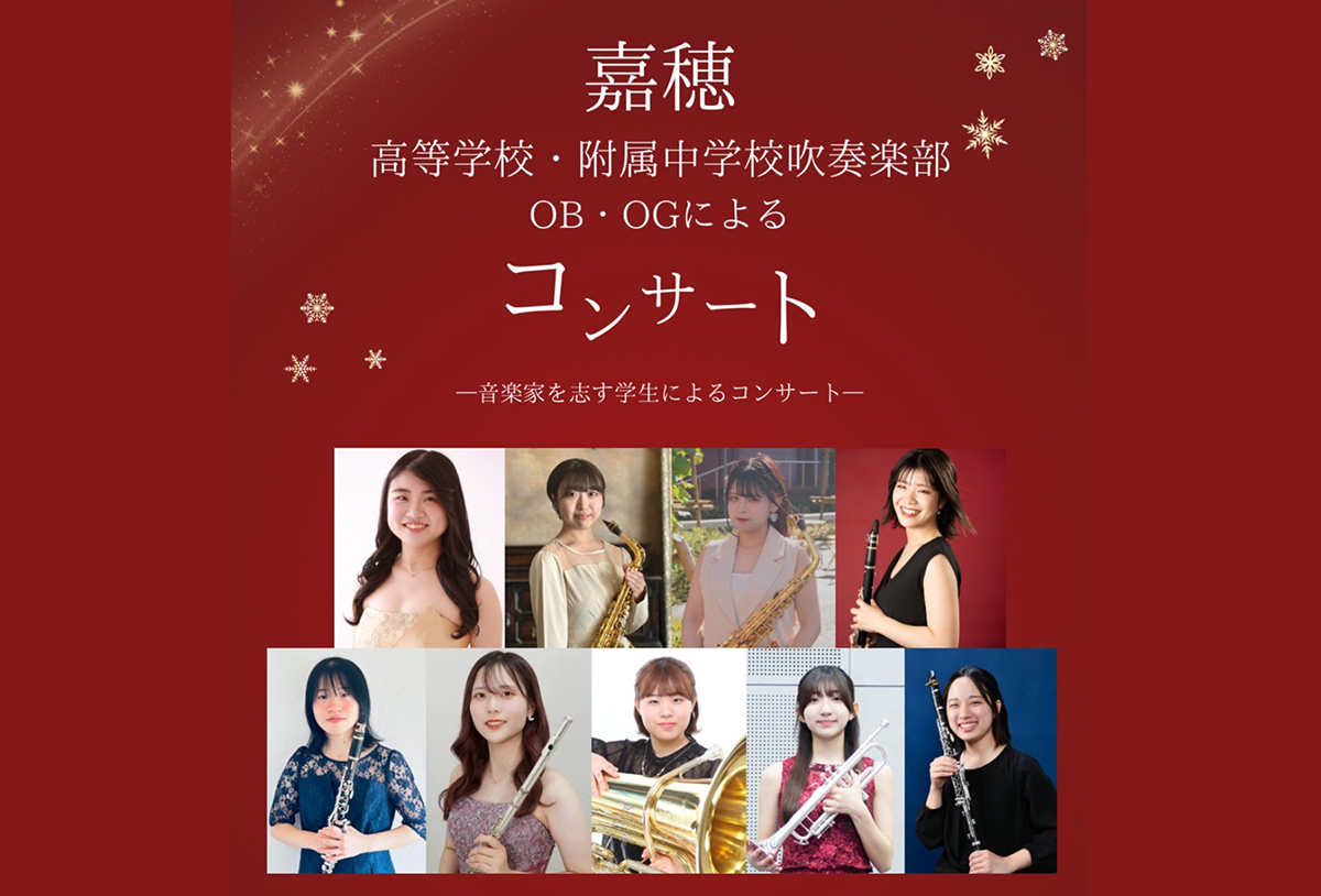 嘉穂高校や附属中学校の吹奏楽部で音楽に親しんできた卒業生たちが集い、現在も音楽を専攻し学び続けている学生によるコンサートです。