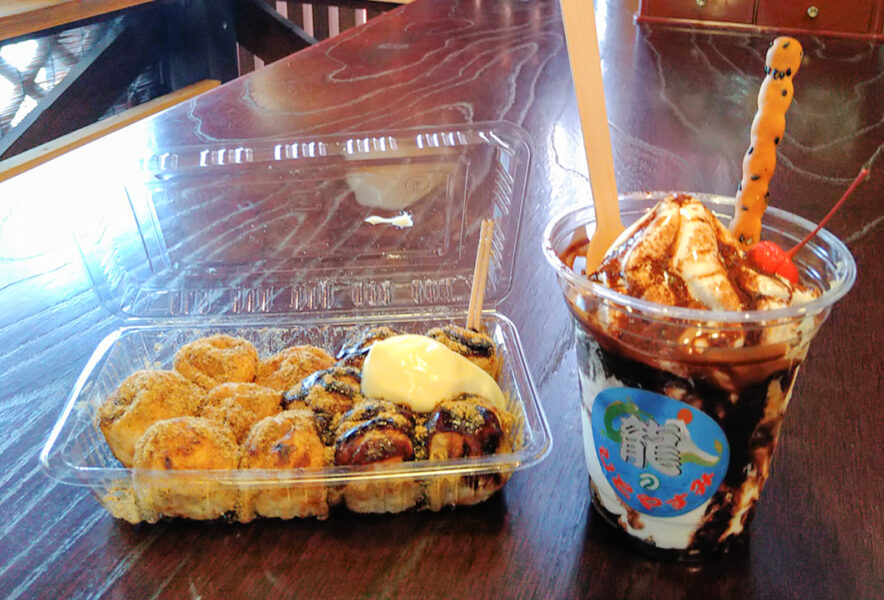 なお、パフェの中に潜んでいた雷太鼓饅頭は、関西出身である店主が販売を始めた九州初上陸の一品。