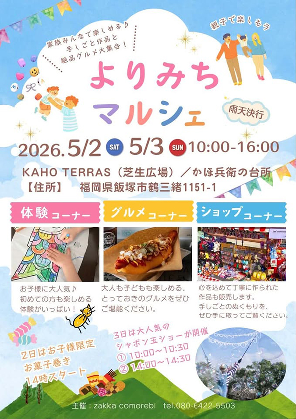 5月2日(土)・3日(日)、カホテラスで「よりみちマルシェ」が開催されます。